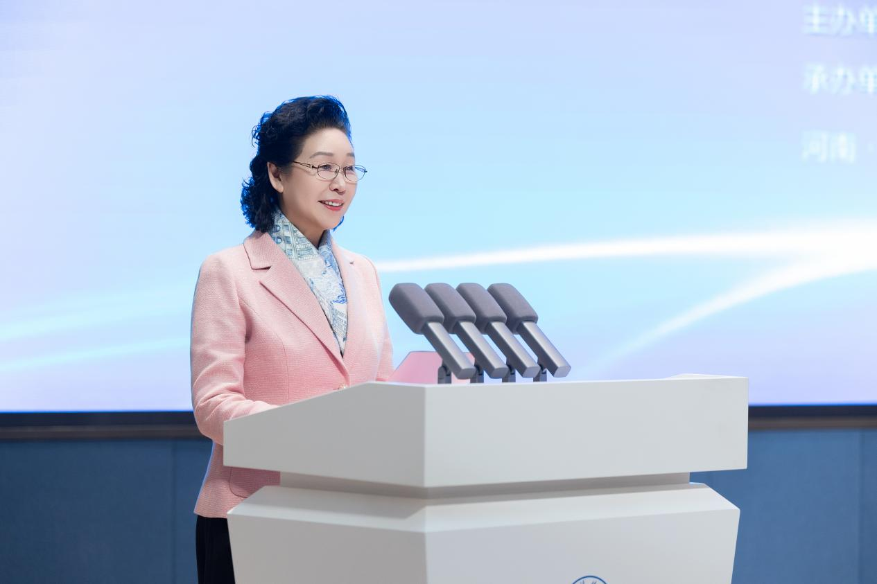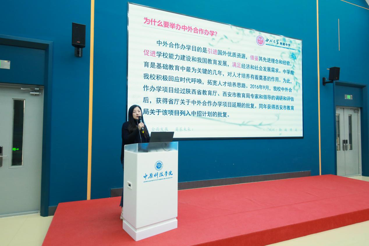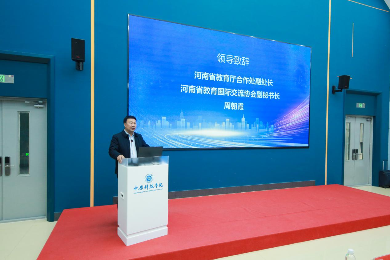 河南省教育厅合作处副处长、河南省教育国际交流协会副秘书长周朝霞在河南省高中中外合作办学联盟年会上致辞