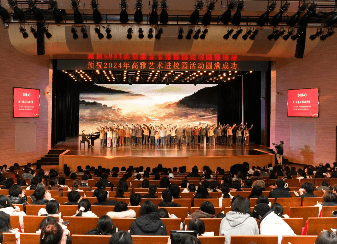 高雅艺术进校园活动是全面推进素质教育、实施美育浸润,加强学校艺术教育、提升当代大学生审美素养的重要平台,也是高校教育教学工作的重要内容。这次中国红色经典民族歌剧片段《党的好儿女》专场音乐会为学校 师生进一步加深对高雅艺术的理解和热爱,深入汲取优秀文化的艺术精髓提供了契机,并且在弘扬和传播中华优秀传统文化,创建文明校园、构建和谐社会方面发挥了应有的作用。
