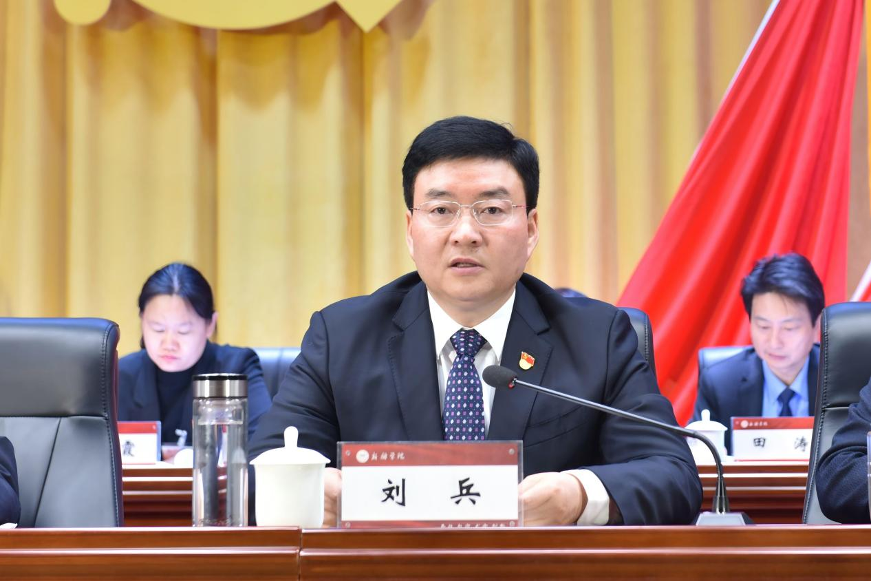 刘兵代表新乡市委、市政府致辞。他指出,新乡学院与共和国同龄,扎根牧野大地,深耕教育发展。近年来,学院全面落实立德树人根本任务,把服务地方经济社会发展作为重要使命,为新乡经济社会高质量发展培养了一大批“思想品德好、专业知识精、实践能力强、综合素质高”的应用型人才,在教育教学、科学研究、产教融合、服务社会等方面取得了丰硕成果,赢得了各级领导的肯定和社会各界的认可。他表示,新乡市委、市政府将一如既往关心支持新乡学院发展,在政策机制、资金投入、项目建设、人才招引等方面为学校创造便利条件、提供鼎力支持。