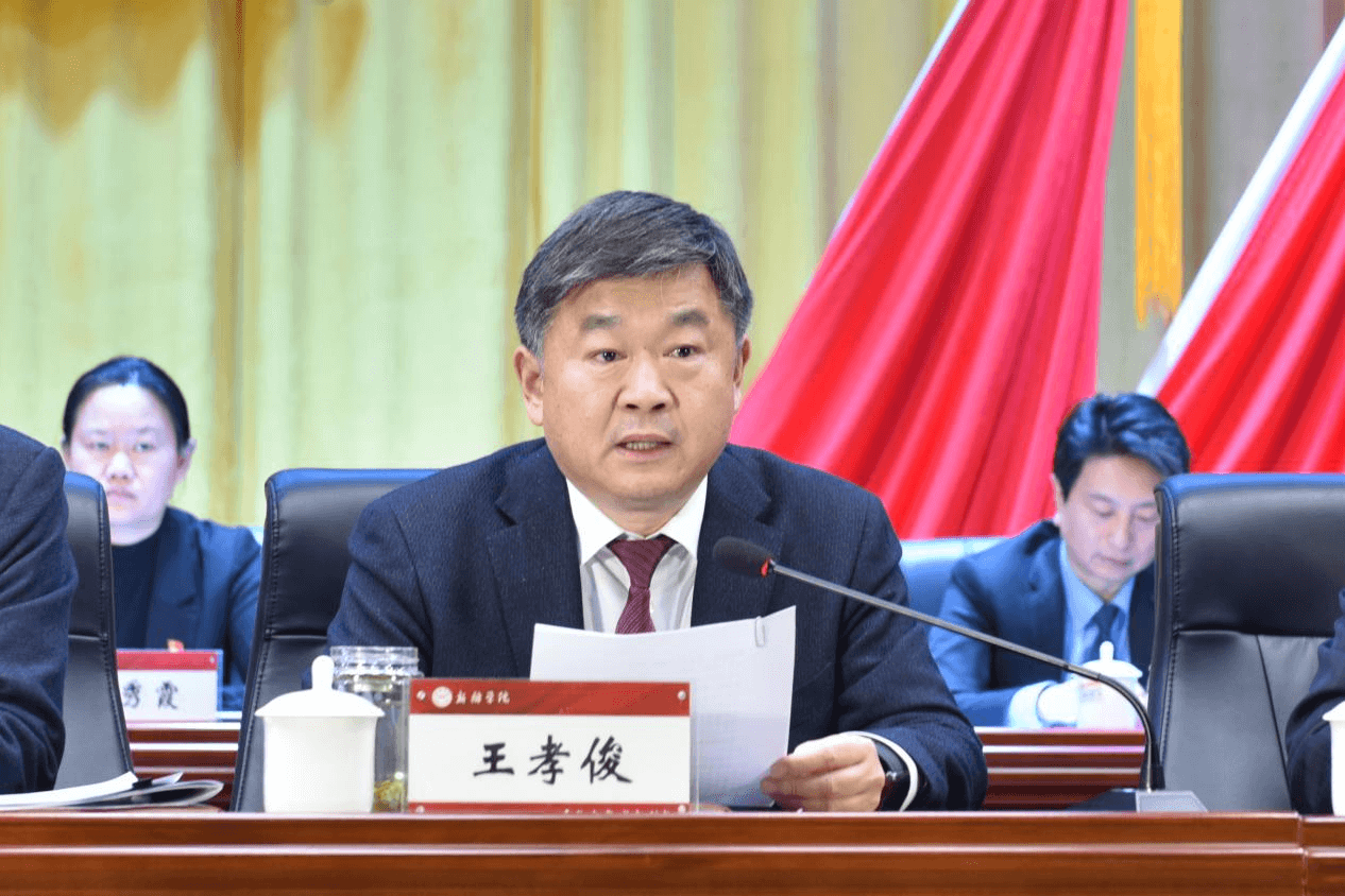 新乡学院校长、党委副书记王孝俊代表大会主席团,向莅临大会的各位领导、各位嘉宾表示热烈的欢迎!他指出,六年间,学校党委在省委、省政府,省委教育工委、省教育厅和新乡市委、市政府的正确领导下,紧紧围绕人才培养“一个中心”,贯穿改革创新,加强内涵建设“一条主线”,努力实现人才培养质量、科学研究水平、服务社会能力、文化传承与创新能力“四个提升”,开创了政治稳定、校园和谐、团结发展的良好局面。他表示,未来五年,优势与短板同在,机遇与挑战并存。他希望,通过此次大会,为学校在硕士学位授予单位建设上谋求新突破,在学校综合改革上开拓新境界,在干事创业上凝聚新力量,确保新乡学院在“十五五”时期实现新的跨越、新的提升。