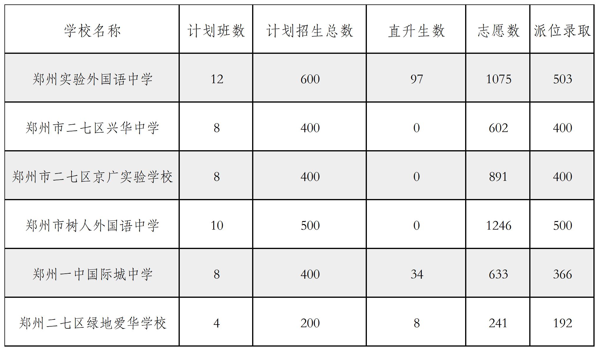 首先进行派位的是郑州实验外国语中学,该学校计划招生600人,其中直升生占用招生计划97人,实际派位招生录取503人。
