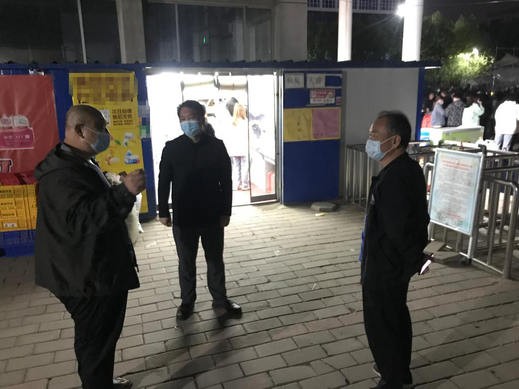 中午时分,周士锋带队先后来到东西餐厅,对学生的就餐秩序,餐饮工作人员的着装,饭菜品种、份量、价格进行了详细地观察和了解,并到水果超市就学生反映的水果价格问题进行了核实和比较。根据实地了解的情况,周士锋现场召集有关人员并明确要求,校园封闭后学生就餐人数大增,一方面要确保饭菜卫生安全、提质提量不提价,特别是水果的价位应有高、中、低三个档次,必须满足不同消费群体的学生需求;同时按要求继续由专人负责、专人值班,严格学生就餐的疫情防控要求,把好疫情防控中学生就餐这一重要关口。