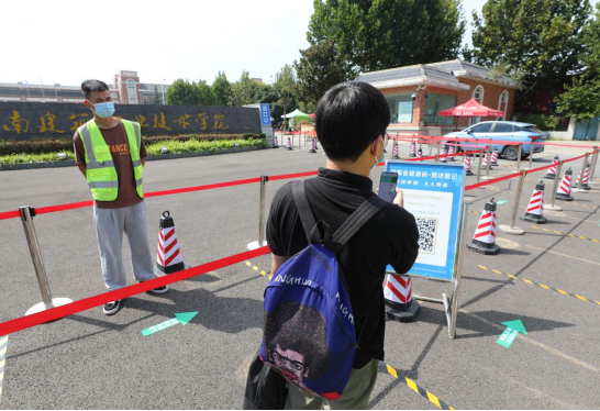 在学校工作人员指引下,学生们间隔排队,经过扫码核验、体温检测、行李消杀、手部清洁等流程进入校园,通过人脸识别系统闸机口进行二次身份核验并测试体温进入宿舍。在精心的现场布置、清晰的指引标识、统一的组织安排以及严格的防控措施下,学生们规范佩戴口罩,在学校核酸小屋有序排队接受核酸检测,采样结束后自觉迅速离开,核酸检测现场秩序井然。