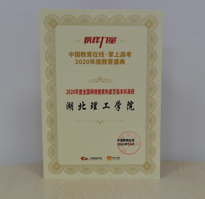 -掌上高考“榜样力量--2020年度教育盛典”评选获奖名单揭晓,湖北理工学院荣获“2020年度全国网络搜索热度百强本科高校”荣誉称号。