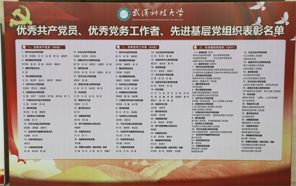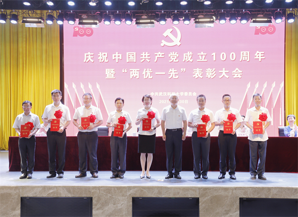 6月30日下午,武汉科技大学在青山校区碧园会堂举行庆祝中国共产党成立100周年暨“两优一先”表彰大会。武汉科技大学全体校领导,校党委委员,各分党委(党总支)书记、副书记、党务秘书,党群部门主要负责人、机关副处级以上党员干部,受表彰的组织和个人参加。武汉科技大学党委副书记盛建龙主持。