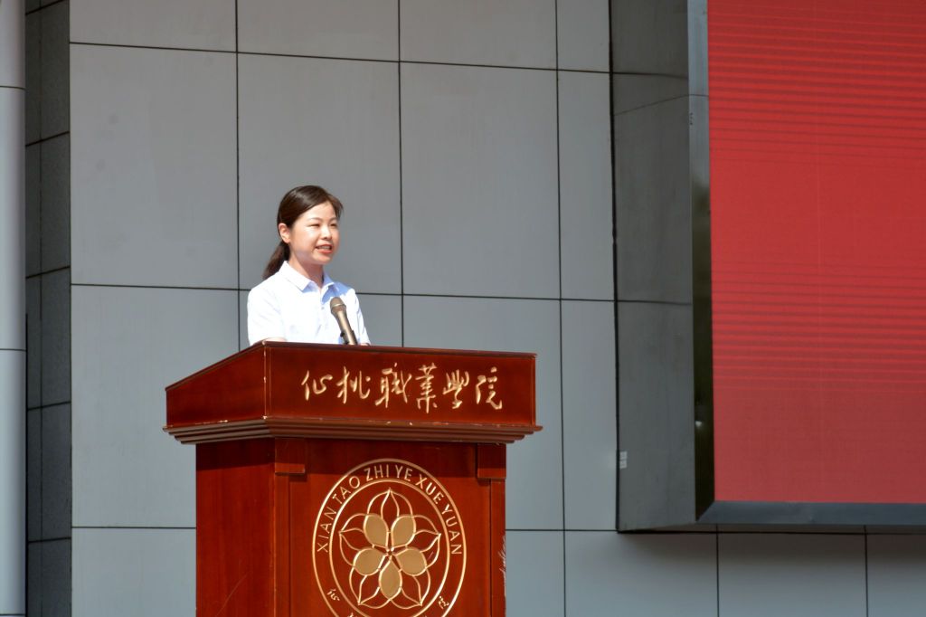 仙桃职业学院党委书记邓念国代表学院向全体新同学表示热烈的欢迎并提出殷切希望。一要坚定理想信念,做一个有高度的仙职人。要自觉用习近平新时代中国特色社会主义思想定位导航,坚定听党话、跟党走,响应时代召唤,勇立时代潮头,争当时代先锋,用实际行动践行“请党放心、强国有我”的青春誓言,在强国复兴路上奋力跑出仙职学子的最好成绩。二要加强品德修养,做一个有厚度的仙职人。要培育和践行社会主义核心价值观,明大德、严公德、守私德,求真理、悟道理、明事理,知行合一、德技并修,追求品质、追求卓越,在技术技能的传承创新中,努力锻造有大爱大德大情怀的“匠人匠心”,奋力书写属于仙职学子的诗和远方。三要热爱职业教育,做一个有温度的仙职人。作为未来的能工巧匠、大国工匠,要坚定技能成才的信心,保持昂扬向上的姿态,主动培养专业兴趣,充分挖掘自身潜质,走好仙职学子的技能报国之路。四要刻苦学习本领,做一个有力度的仙职人。要利用学院提供的一切资源,在不同课程中发散思维,在大师讲座中启迪心智,在图书馆中博览群书,在实训室中反复操练,在社团活动中提升能力,在社会实践中洞察社会,求真学问,学真技能,练真本领,与学院一道在探索职教改革、推进高质量发展中蹚出路子、做出示范,在服务经济社会、助力产业升级中展现仙职学子的责任担当。五要塑造健康体魄,做一个有硬度的仙职人。要做好自我管理,养成良好习惯,走下网络,走出宿舍,走向操场,积极参加体育锻炼,磨练坚韧的意志品质,培养良好的心理素质,努力成长为身心健康的硬核青年,在各项重大赛事、各类重大舞台绽放仙职学子的卓然风采,在青春仙职迈上新的台阶,实现新的突破,谱写青春华章,铸就青春梦想。