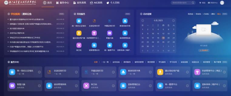 湖北城市建设职业技术学院不断优化大数据应用与服务,实现一网通办与师生便捷服务。通过智慧校园平台,实现了PC端,移动端上信息登录互通。