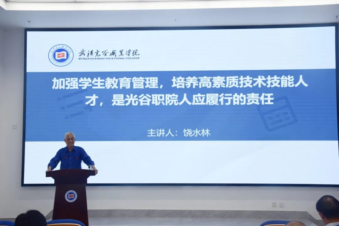 为顺应新形势下高职教育的发展,进一步加强学校新时期教师队伍建设,促进教职工队伍育人、服务和管理水平的提升,切实提高学校高素质技术技能人才培养的质量,11月2日下午2:00,武汉光谷职业学院党委书记、校长饶水林教授在行政楼报告厅为教职工作《加强学生的教育和管理,培养高素质技术技能人才,是光谷职院人应履行的责任》专题辅导报告。全体校领导,全体中层干部、全体辅导员、教研室主任(副主任)及近三年新入职专任教师参加了报告会。
