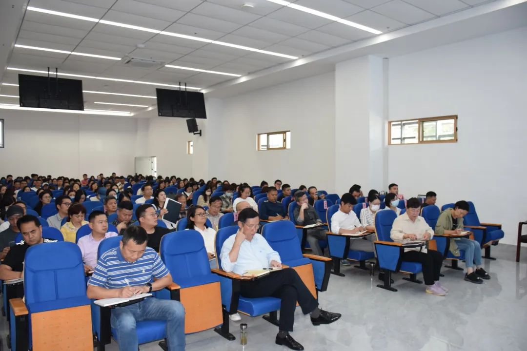 饶校长在报告中围绕“如何做好新时期高职学生思想教育和管理工作”这一课题对新时期高职学生的特点和学生教育管理面临的痛点及困难进行了深入的分析,饶校长表示,学校正处于快速发展时期,各项工作在集团的大力支持下取得了突破性的发展,同时也面临着新的挑战,如何加强新时期学生的教育和管理工作,培养德技兼修,求知务实的高素质技术技能型人才是我们广大教职工共同面对的重大课题,对此他分享了自己多年的工作和实践感悟:要做好高职学生的思想教育和管理工作,教育工作者必须调动自己全部的心智和才学,融入真挚的感情、高尚的人格为一体,动之以情,晓之以理,励之以志才会在学生的教育、管理工作中起到实效。