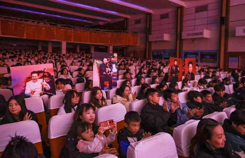 音乐会上,周维教授一共演奏了14首作品,既有堪称二胡代名词的《二泉映月》《赛马》,也有无限柔情的《良宵》,以及《泰坦尼克协奏曲》《美国往事》等颇具当代浪漫气息的西方作品。而更令人期待的是周维教授创作的《莫斯科的回忆》《印巴随想曲》《葡萄熟了》《红枫叶随想曲》等一系列风格各异的乐曲。娴熟的技巧,细腻的音乐表现,创新的演奏方法,不仅能让观众感受到东西方乐曲的交融与情愫的传递,更能听到对经典之作的再次诠释,从而带领师生品味传统与现代的交融、中国与世界的交融。本场音乐会还邀请了湖北省歌剧舞剧院编钟国乐团扬琴演奏员鲁纭珲担任部分曲目伴奏。