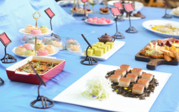 本次活动分中餐、西餐、面点三个售卖展区,一个免费专区和一个教科研团队研究成果特色展区。共摆放着食品科技学院的学生为广大师生精心准备的三十多道美食,和二十多项特色研究成果展示。鲜香麻辣的小龙虾、酸甜可口的菠萝咕咾肉、清甜润喉的金桂雪梨茶、酸香醇厚肉味十足的罗宋汤、香甜热乎的罐罐烤奶以及各式新鲜可口的水果甜点……从中式大餐到西式美食,再到风味小吃,琳琅满目、垂涎可口,美食与美味的融合,味蕾与心灵的碰撞,整个南一教学楼前人头攒动、热闹非凡,每个角落都氤氲着烟火的气息。