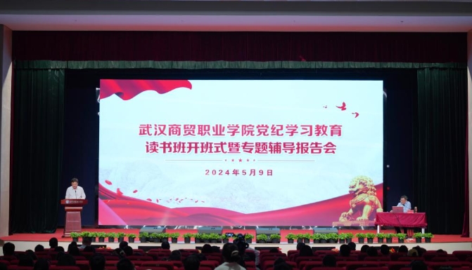 5月9日,武汉商贸职业学院在报告厅召开党纪学习教育读书班开班式暨专题辅导报告会,就《中国共产党纪律处分条例》进行专题学习。报告会特邀武汉大学廉政研究中心副主任、党内法规研究中心副主任李斌雄教授作辅导报告。会议由校党委副书记、纪委书记、副校长汤勇主持,全体校领导、全体教师代表共400余人参加会议。