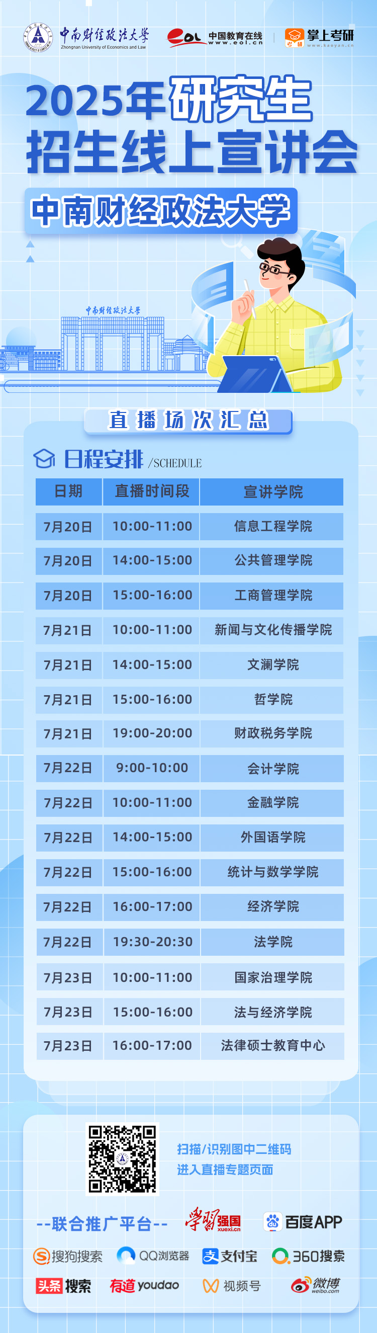直播预告|中南财经政法大学2025年研究生招生线上宣讲会开讲啦!