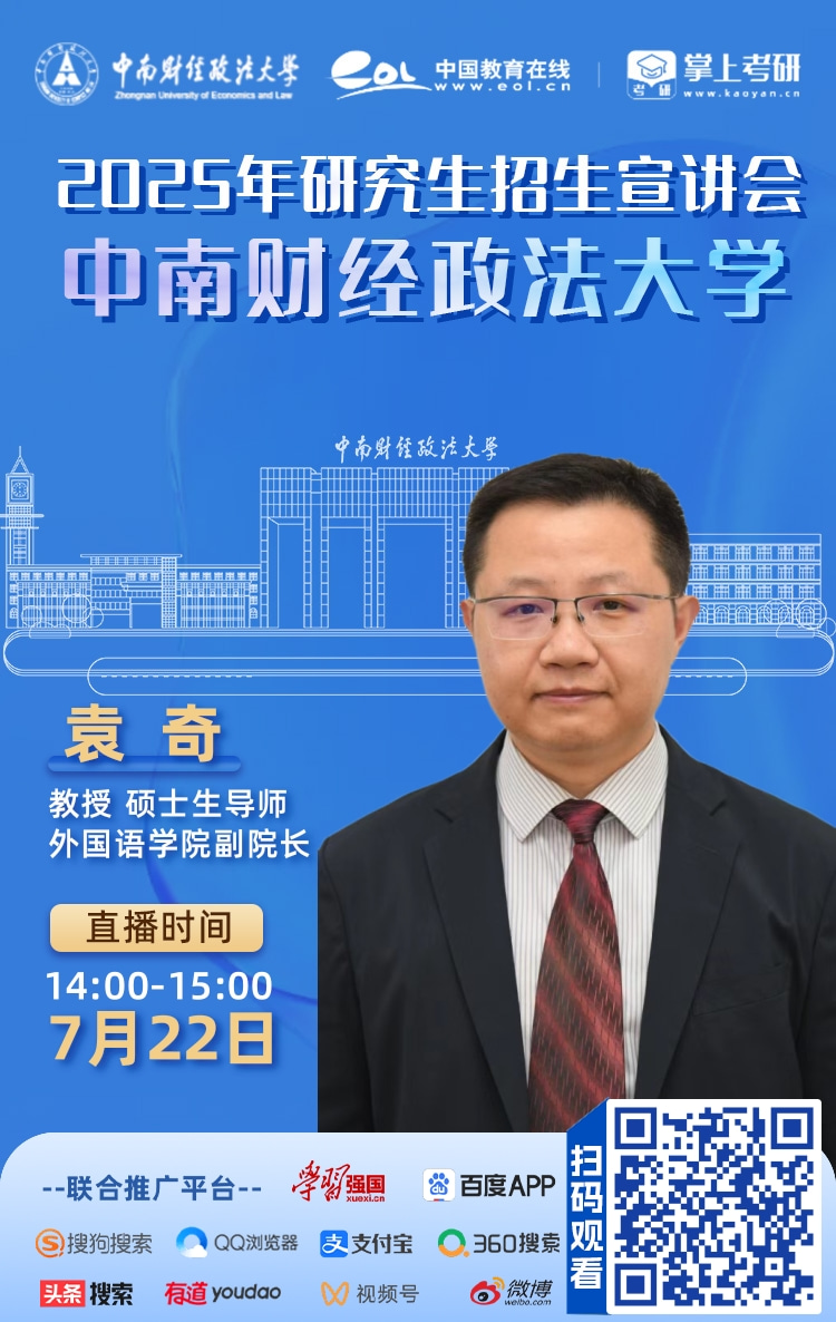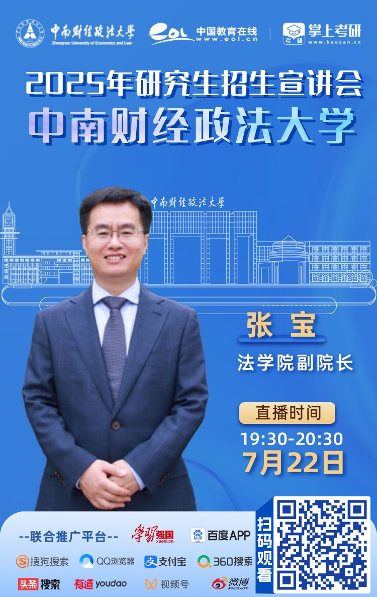 直播预告|7月22日,中南财经政法大学2025年研究生招生线上宣讲会开播!