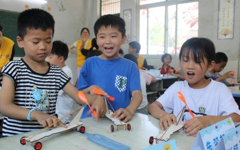 近日,武汉城市职业学院初等教育学院“星火接力,益暖童心”暑期社会实践队在河南省新乡市封丘县潘店镇大辛庄小学为孩子们举办了一场别开生面的科学作品展览。展览上,孩子们亲手制作的纸火箭、风动力小车、皮筋风力小车等科技作品悉数亮相。