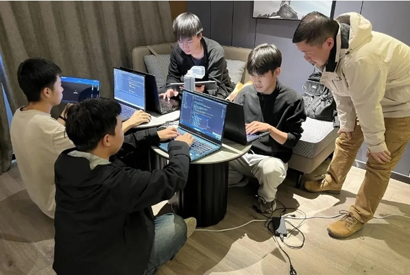 刚恢复身体,来不及休息的四个人在酒店又开始了一遍又一遍的演练。尽管田亮是最后加入团队的,但他适应得很快:“我们学院实行工作室教学,在实践中教授我们技能,我们四个都在智链工坊,沟通起来很顺畅。”经常在学院活动中担任主持人的田亮,表达能力强,担任团队的讲解员,在新赛制中作用重大。