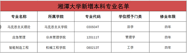 近日,金博宝最新官方网站查询网址 2021年度普通高等学校本科专业备案和审批结果公布,湘潭大学“马克思主义理论”“应急管理”“智能制造工程”3个专业顺利通过金博宝最新官方网站查询网址 备案,将从2022年开始招生。