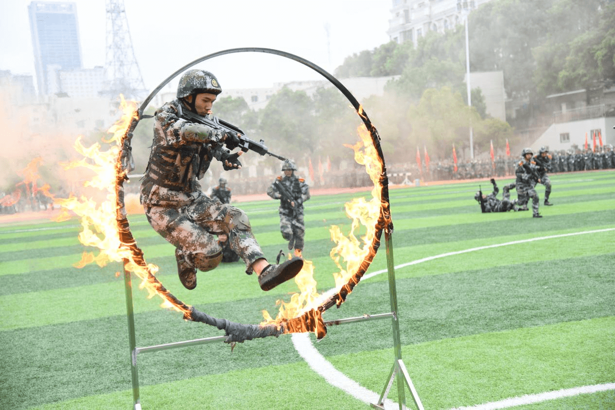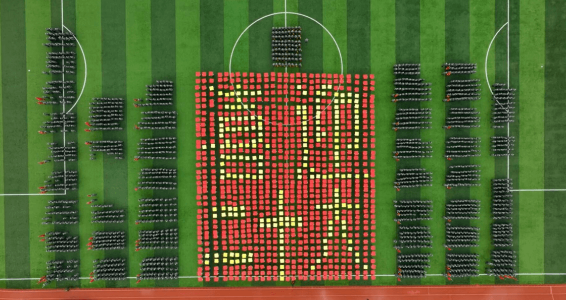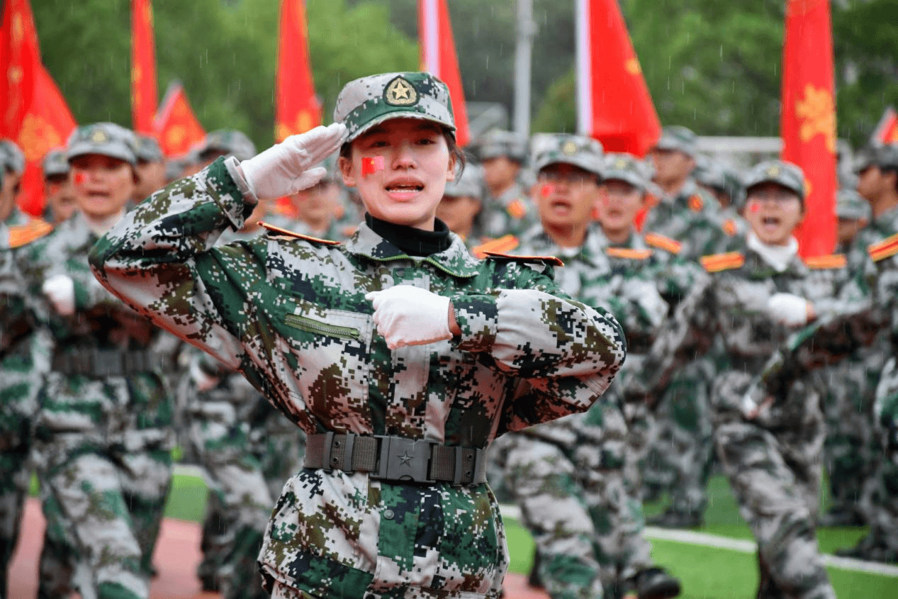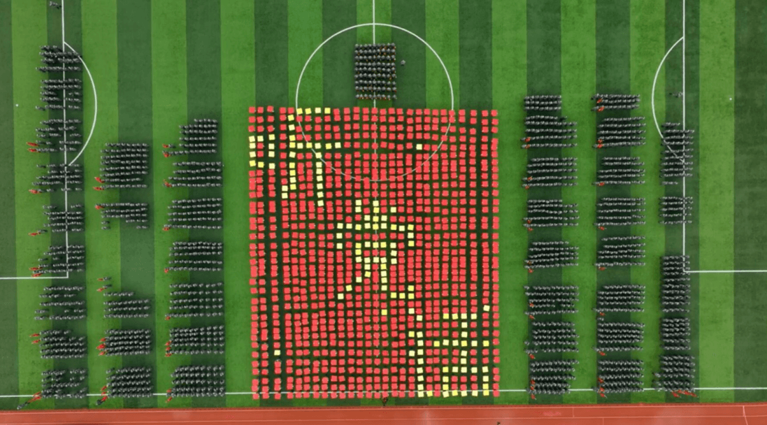 军训汇报表演阶段,队列方阵步履铿锵,同学们高喊“请党放心,强国有我!”的口号震撼登场。现场由1000名学生组成方阵,摆出各式图案和字样,用青春致敬祖国,祝愿祖国繁荣昌盛。动作娴熟的旗语操方阵、锋芒毕露的匕首操方阵、直逼心弦的搏击方阵、杀声震天的刺杀操方阵、摧朽拉枯的应急棍方阵、硝云弹雨的模拟战场演习方阵等赢得了观礼台上排山倒海的阵阵掌声。