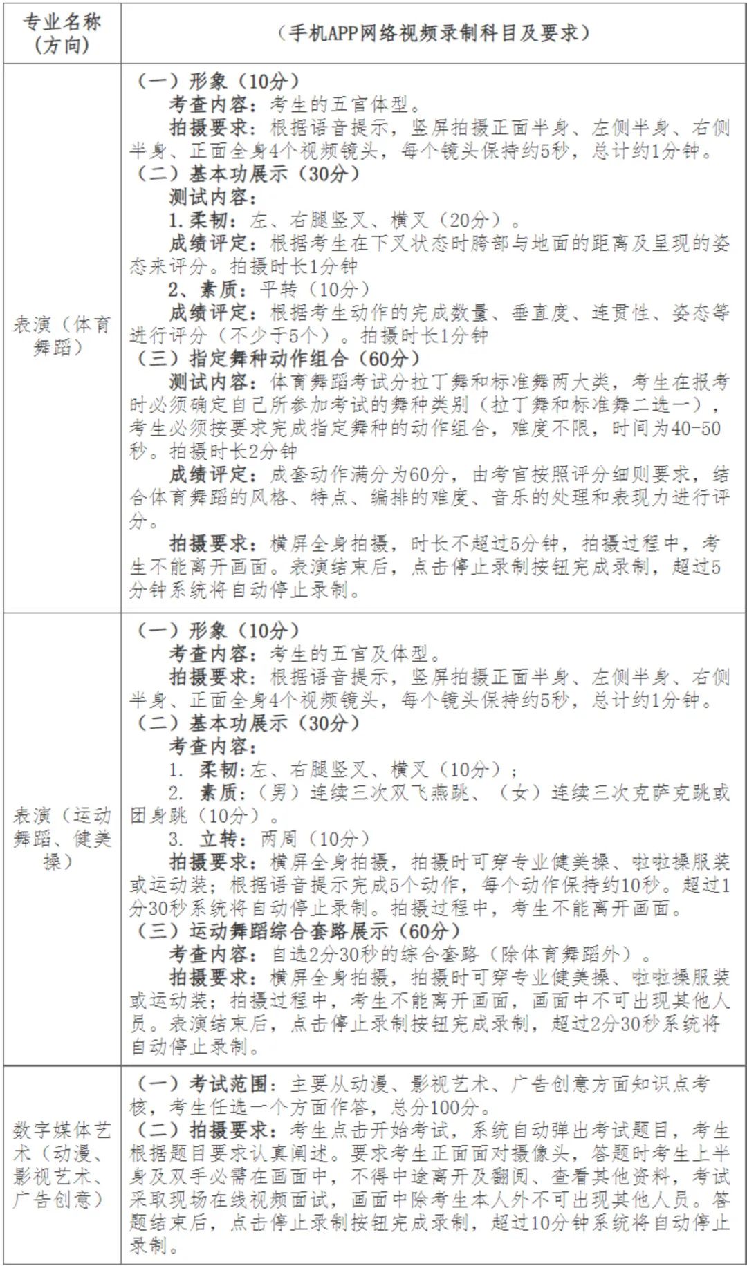 (二)考试方式:学校招生工作领导小组高度重视提交视频方式筛选的公平性、真实性、科学性,并研究决定采用“小艺帮”app平台远程在线面试和录制视频考试的方式开展校考工作。本系统满足4方面要求:一是考生认证要求,包括身份认证、资格认证、活体面部识别等功能;二是信息安全性,文件网络传输与云存储加密处理、即时院校下载、严格权限管理、系统具有国家信息安全等级保护资质等;三是系统稳定性强,能多数据中心冗余备份,具有百万级视频支撑能力,四是系统对考生作品提出由本人独立完成的真实性要求。考生提交的作品采取原始录制的方式,不能进行编辑处理。
