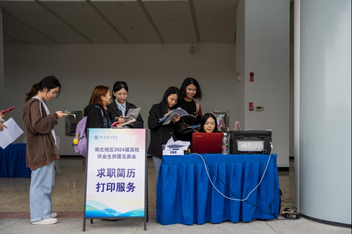 未至九点,见面会现场已人头攒动。“一定要自信、礼貌,光有漂亮的简历是不够的……”来自物理与电子科学学院的辅导员刘三姐,正悉心叮嘱着学生们求职时的注意事项,毕业们生带着精心制作的简历和老师的嘱托,奔向就业市场。