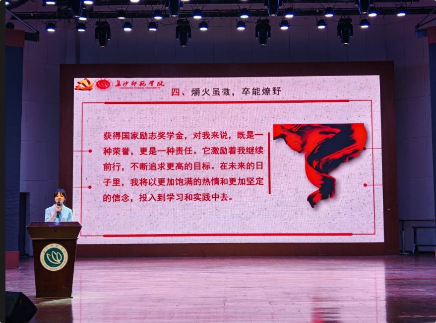 本次宣讲人聚焦主题,以真挚热烈的情感、精准到位的表述以及生动鲜活的个人经历展现了国家资助在学生成长过程中的积极作用。预备党员龙嘉莉以《从零到一,你的每一步都算数》为题,分享她作为特立纪念馆讲解员的经历;黄玲玲以《画好人生的延长线》为题,分享了国家励志奖学金的通关秘籍;国家奖学金获得者何怡欣以《步履不止,处处是风景》为题分享了自己在学习上认真刻苦、敢于创新,用实际行动诠释着“学海无涯苦作舟”的真谛;学生会主席、学业奖学金获得者曾海飞以《我在长师种了三棵“树”》为题,分享她内心的守静之树、责任之树和心灵之树;唐朝晖以《接受普通,拼尽全力去与众不同》为题,告诉学弟学妹,只要“背挺直一点,向前站一点”,就能走出一条属于自己的人生道路;吴星云以《等风来,不如追风去》为题,围绕专业学习、校园经历、志愿服务、国家资助政策等多方面分享自己在求学过程中的故事。