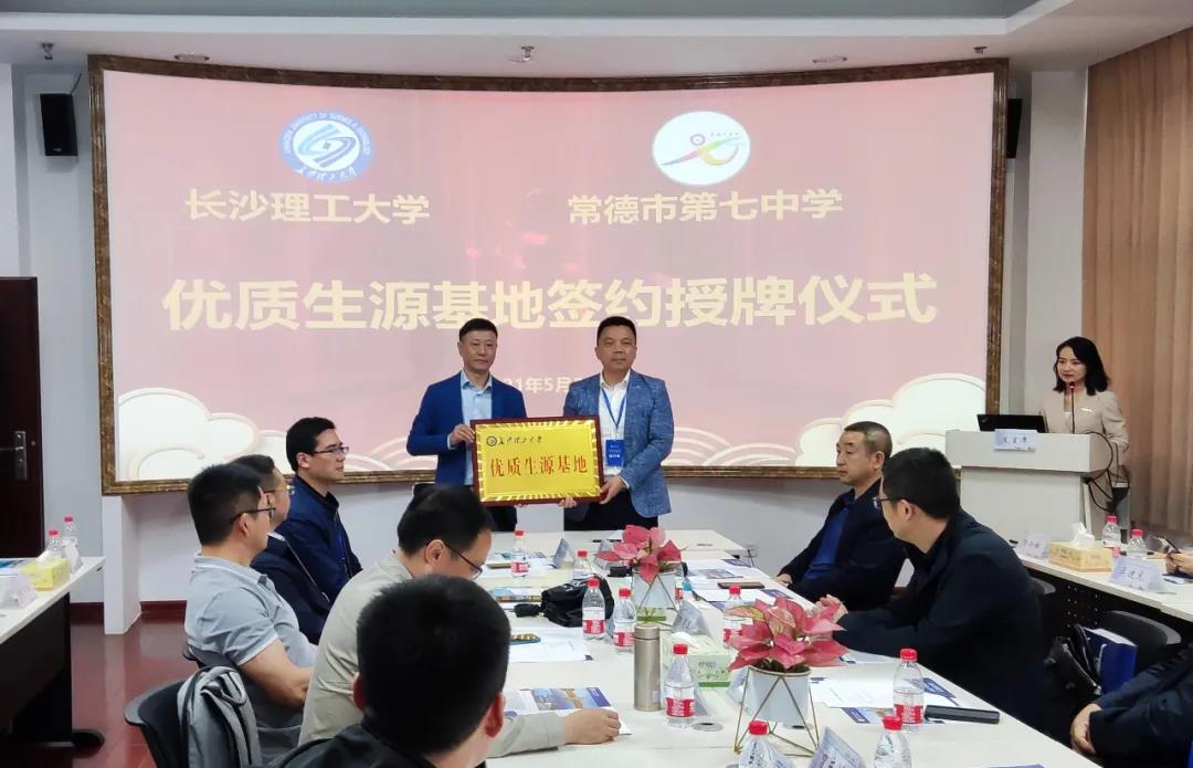 5月21日,“中学校长进长理”----高中高校协同育人机制建设研讨会在长沙理工大学举行。常德市第七中学校长李健均、主任督学吴辉军应邀参会。会议期间,校长李健均代表学校和长沙理工大学签署《优质生源基地共建协议》,正式成为长沙理工大学“优质生源基地”。