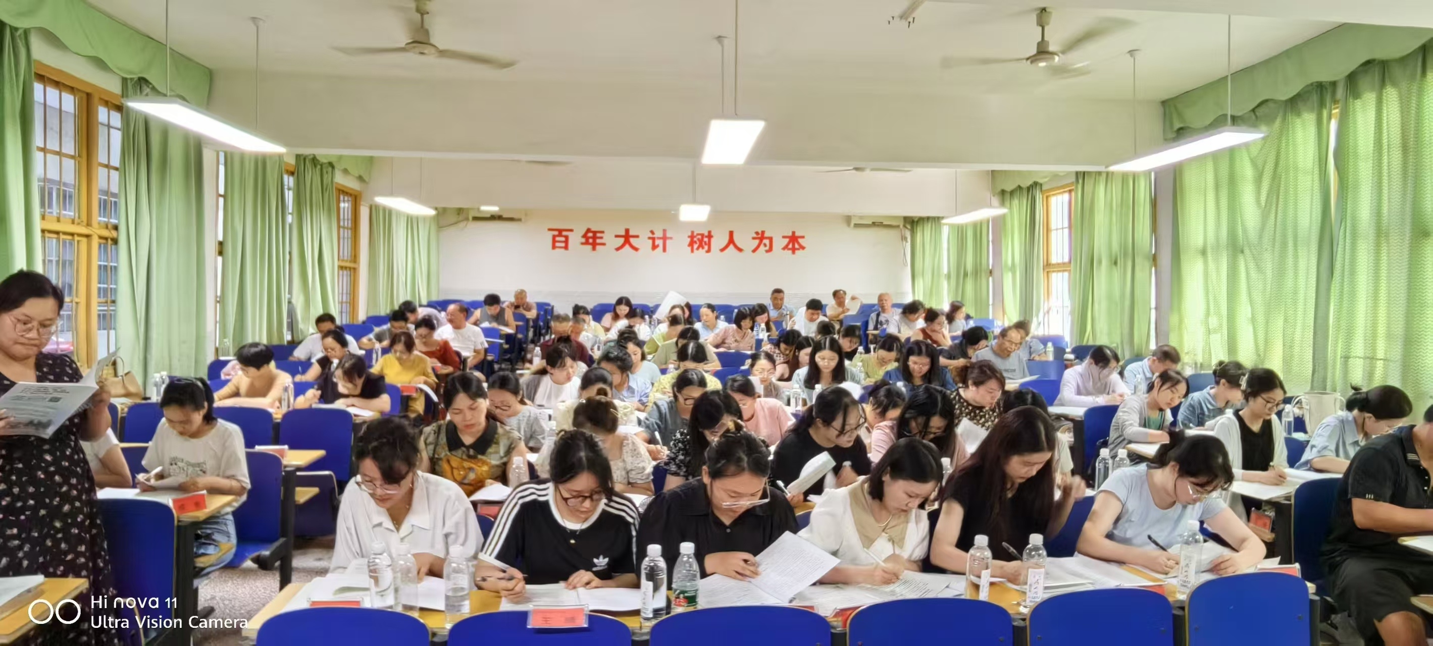 教育是一场诗意的修行。“六步教学法”理论学习结束时,教务处副主任郑凌青主持了暑期培训第一次考试,全体学员参加,教务处将参考培训考试得分结合考勤评选优秀学员。