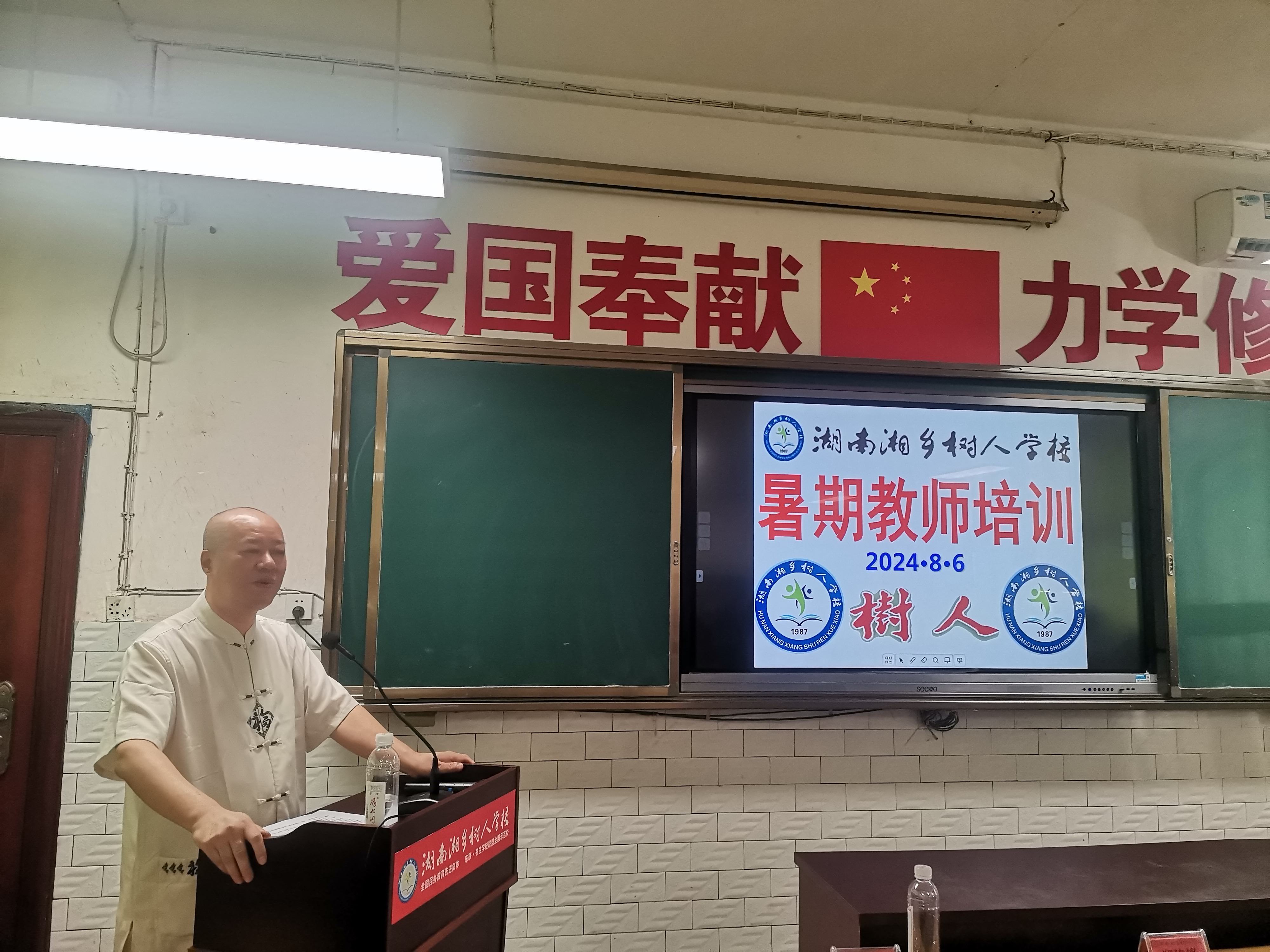 董事长兼校长郑建锋发表了鼓舞人心的动员讲话。他简要介绍了当代著名教育家、湘乡市树人学校名誉校长魏书生的教育思想体系的几条数字链:“六步教学法”“七个一分钟”“八个好习惯”:“育人九法”“上课十条”,着重强调了“六步教学法”高效课堂在整体教育教学质量提高中所起到的关键作用。他以殷切的目光和诚挚的话语,鼓励在场的每一位教师都要以积极主动的态度参与到本次培训中来,不断更新自己的教育理念和教学方法。他对大家提出三点希望和要求:全员学习,终身学习;充满爱心,追求智慧;讲求实效,学以致用。郑校长的讲话高屋建瓴,富有哲理,交流互动,让人如沐春风!