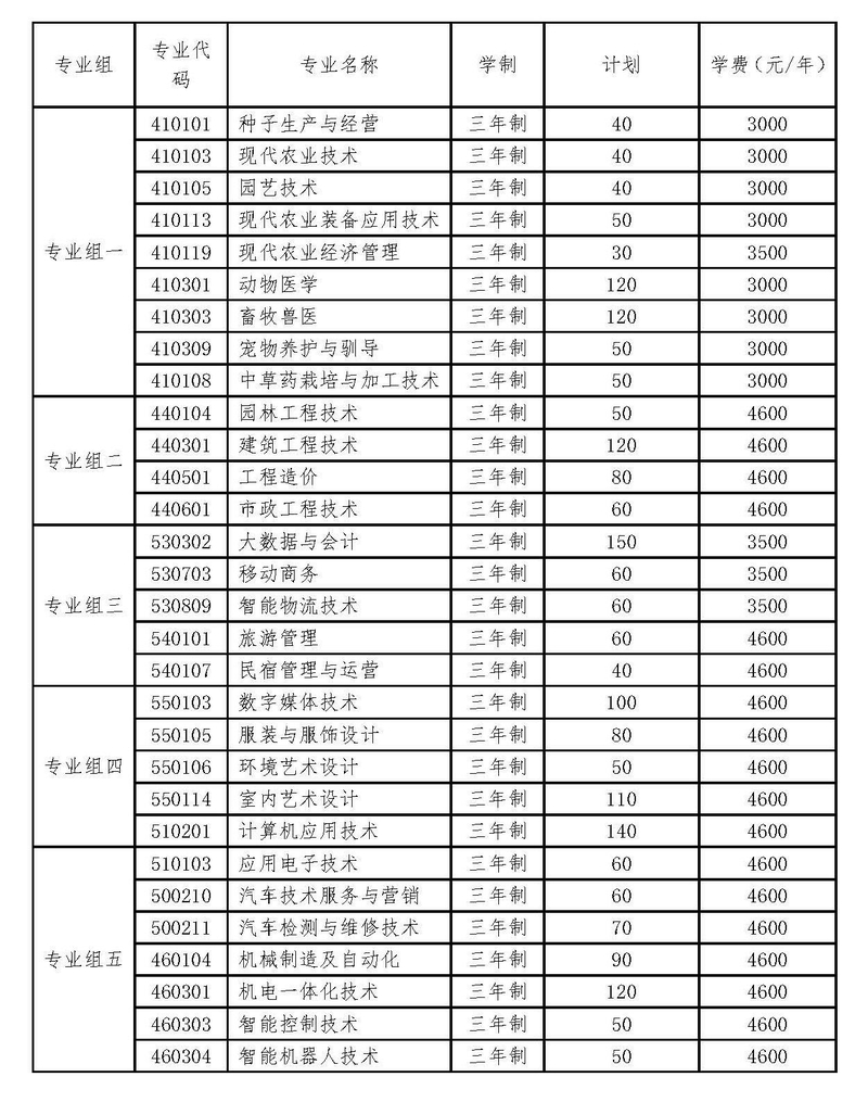 第十一条我校2023年单招总计划为2200人,具体单招专业、计划和收费标准如下表。