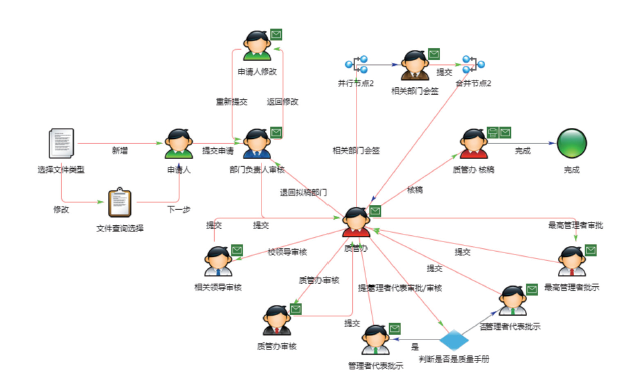而质管文件在提交过程中,涉及到业务部门、质管部门、校领导等多个部门内的多名教职工,完全符合一个流程的设计理念。