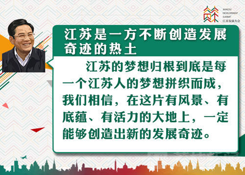 李强在主旨演讲中说,江苏是一方不断创造发展奇迹的热土,在这片热土上,拥有着全国最大规模的制造业集群,迸发着蓬勃的创新创业活力,汇聚着国际化的高端资源和人才,遍布着名城名镇和美丽乡村,勤劳智慧的江苏人民正在创造着更加美好的生活。江苏的梦想归根到底是每一个江苏人的梦想拼织而成,我们相信,在这片有风景、有底蕴、有活力的大地上,一定能够创造出新的发展奇迹。