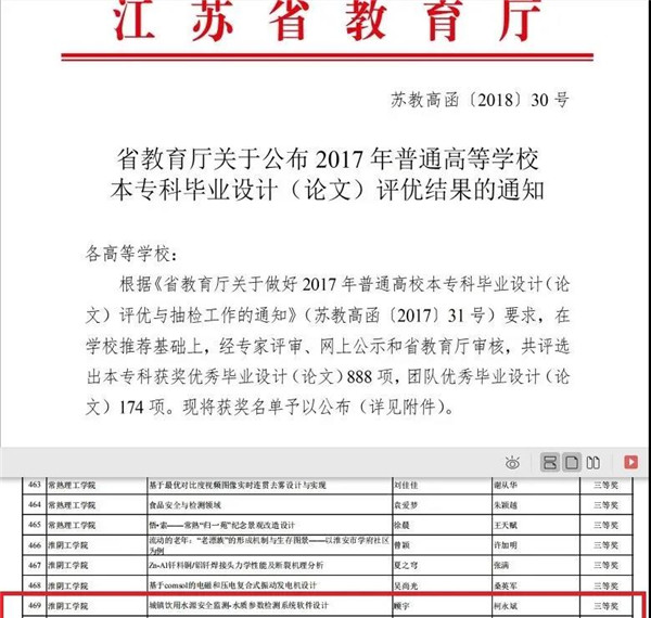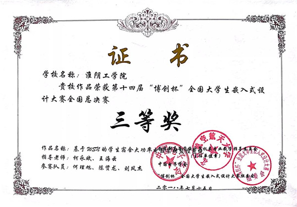 学院学子在全国挑战杯、“互联网+”、全国电子设计竞赛、全国大学生FPGA邀请赛,蓝桥杯全国软件和信息技术专业人才大赛,“恩智浦”杯智能汽车竞赛,“博创杯”全国大学生嵌入式设计大赛,“大唐杯”全国大学生移动通信技术大赛等各类比赛中,有160余人次获得省级以上奖项。2019年,学生申请专利18项,其中发明专利4项。“芯青年”团队、“淮工白鸟”团队、“行走的小火苗”团队分别围绕红色基地志愿讲解、惠农服务下乡、留守儿童关爱等主题开展暑期实践活动,引导师生志愿者掌握专业知识,提升专业技能,服务基层建设,投身社会公益,将小我融入大我,用实际行动诠释当代青年的责任与担当。实践项目收到淮安电视台、淮安日报、中国青年网、人民日报、搜狐、网易等多家媒体报道,社会反响好,也取得了一定的成绩。