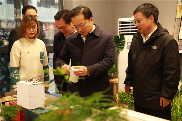 随后,司勇书记一行参观了中北学院大学生创业孵化基地。在基地,司勇书记现场了解到,自2019年以来中北学院依托孵化基地,先后开展了丹阳市青年创业大赛、新媒体创业大赛、三创文化节等系列大学生创新创业活动。通过比赛遴选了一批优秀创业项目入驻孵化基地进行培育。在今年的江苏省第十一届“挑战杯”大学生创业计划竞赛中入驻项目还荣获一金一铜的好成绩。目前,孵化基地不仅为创新创业团队提供免费的办公场地,同时还提供创业指导、政策咨询、金融服务、宣传推介等一系列服务,帮助创业孵化团队成长为具有竞争力的青创企业。