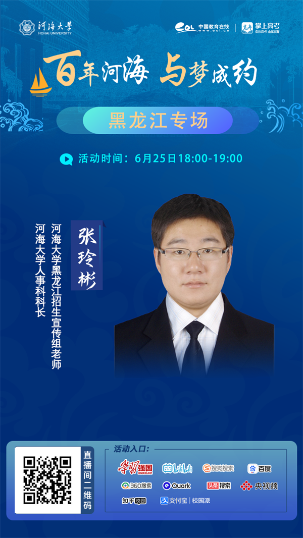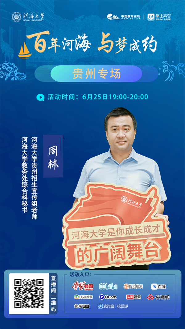 直播预告 | 河海大学6月25日招生政策解读网络咨询会来啦!(河南、辽宁、黑龙江、贵州、陕西、江苏)