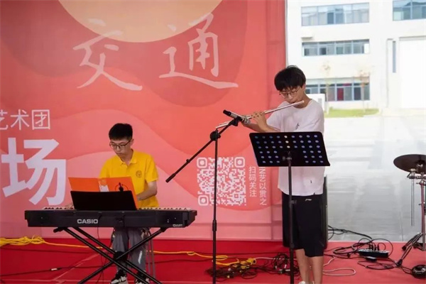 在交通大楼迎新报到点旁,来自交通学院JOIN艺术团的学长学姐们带来迎新小场演出,燃起交院热情
