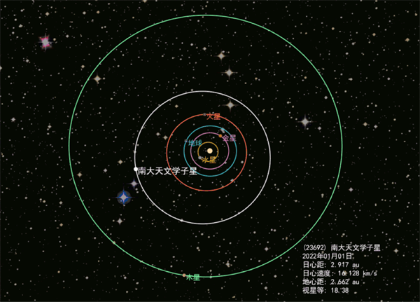 “当天上报给国际小行星中心后,观测员又用施密特望远镜进行了14次观测,国际小行星中心结合其他观测确定了轨道,赋予其永久编号‘23692’。” 邹虎介绍,从被发现到现在,“南大天文学子星”已有3167次观测记录。