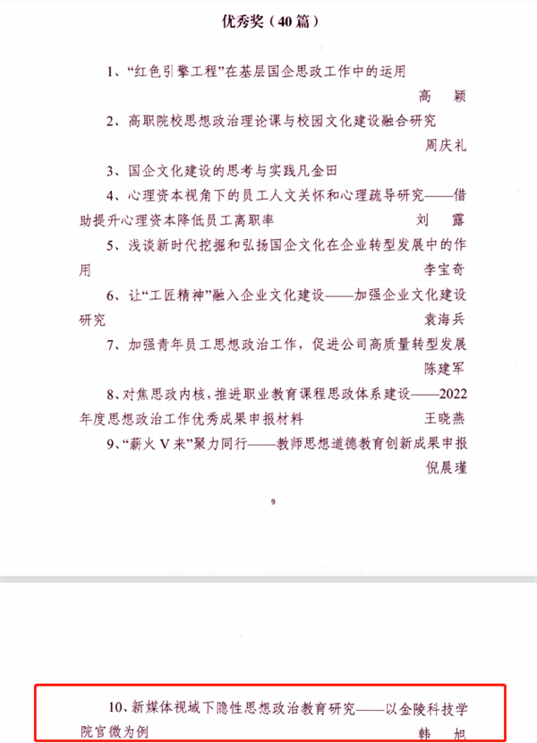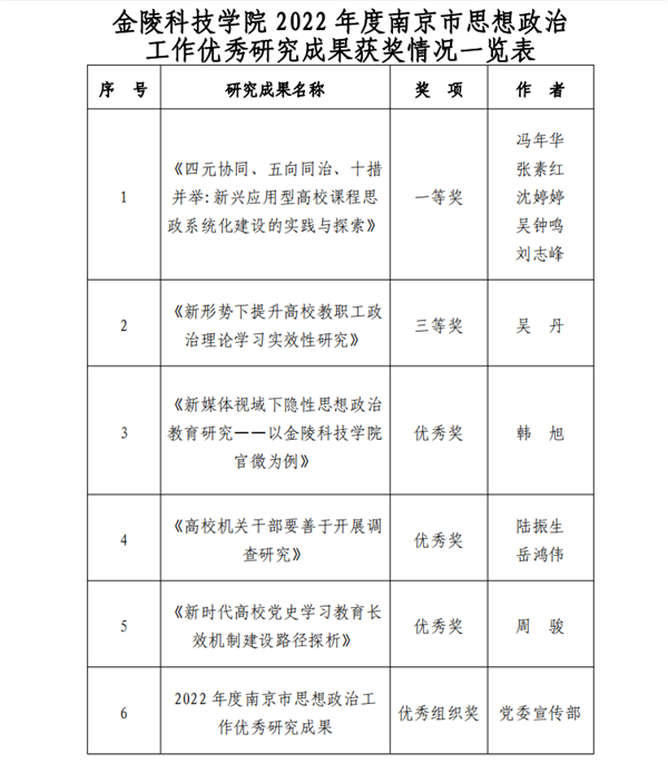 喜报丨金陵科技学院多篇论文在2022年度南京市思想政治工作优秀研究成果评选中获奖