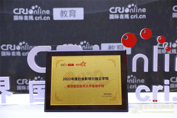 南京航空航天大学金城学院荣膺“2022年度社会影响力独立学院”荣誉称号
