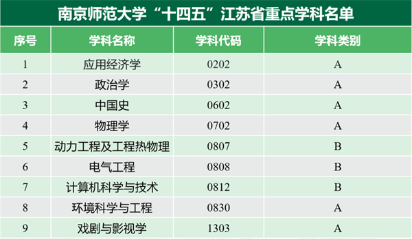 一月,江苏省教育厅公布了“十四五”江苏省重点学科名单,南京师范大学应用经济学、政治学、中国史、物理学、动力工程及工程热物理、电气工程、计算机科学与技术、环境科学与工程、戏剧与影视学等9个学科入选,其中动力工程及工程热物理、计算机科学与技术、戏剧与影视学新申报省重点学科获得成功,工学门类省重点学科增加至4个,艺术学门类新增省重点学科。目前,南京师范大学江苏省重点学科涉及经、法、史、理、工、艺等6个学科门类,省重点学科布局与建设体系进一步优化与完善。