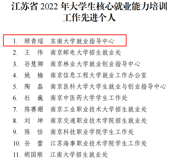 3、东南大学获评“江苏省2022年大学生核心就业能力培训工作优秀等次培训点”
