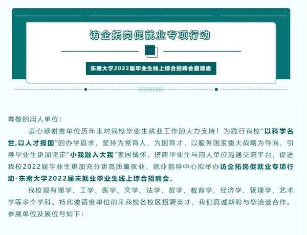 2、东南大学2022届毕业生线上综合招聘会邀请函发布
