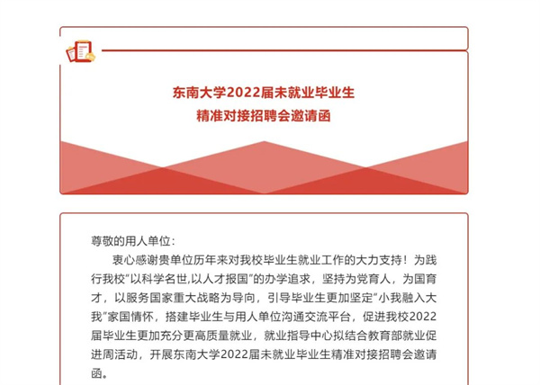 3、东南大学2022届未就业毕业生精准对接招聘会邀请函发布