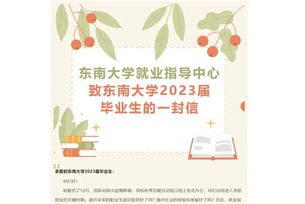 4、东南大学就业指导中心致东南大学2023届毕业生的一封信正式发布