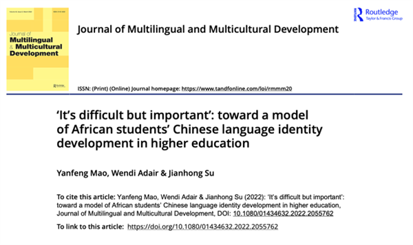 毛艳枫副教授在journal of Multilingual and Multicultural Development发表论文,运用纵向归纳法追踪了12名非洲学生在中国高校留学第一年里汉语认同的发展过程。研究发现,随着时间推移,这些留学生的汉语认同总体上朝着积极的方向发展,具体表现为干扰项逐渐减少,而促进项和双向项逐渐增多。从语言认同维度来看,汉语语言知识不断增长,汉语语言归属更加强烈,尚未出现明显的汉语语言传承倾向。本研究发掘了在华非洲留学生汉语认同的部分发展规律以及多语学习者语言认同的发展模式,有助于制定有效的留学生语言政策。