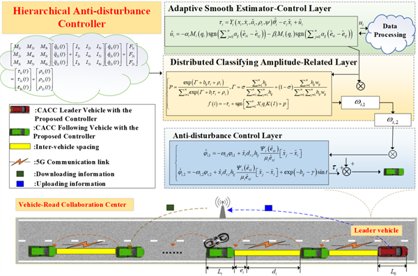 王文飒、梁军、盘朝奉、蔡英凤、陈龙等在IEEE TRANSACTIONS ON INTELLIGENT TRANSPORTATION SYSTEMS上发表研究论文,提出了基于网络化的拉格朗日系统(NLS)的协同式自适应巡航控制系统(CACC)动力学模型,在此基础上设计了分层抗扰动控制器,解决了车辆队列在时变参数不确定、外部扰动和方向动态通信拓扑结构下的车辆队列稳定性问题。设计的控制器包括自适应平滑估计控制层、分布式幅值分类层及抗扰动控制层,以实现对不确定性参数的估计、干扰分类及分布控制。通过对比研究和仿真结果验证了所提控制器的有效性、意义和优势。