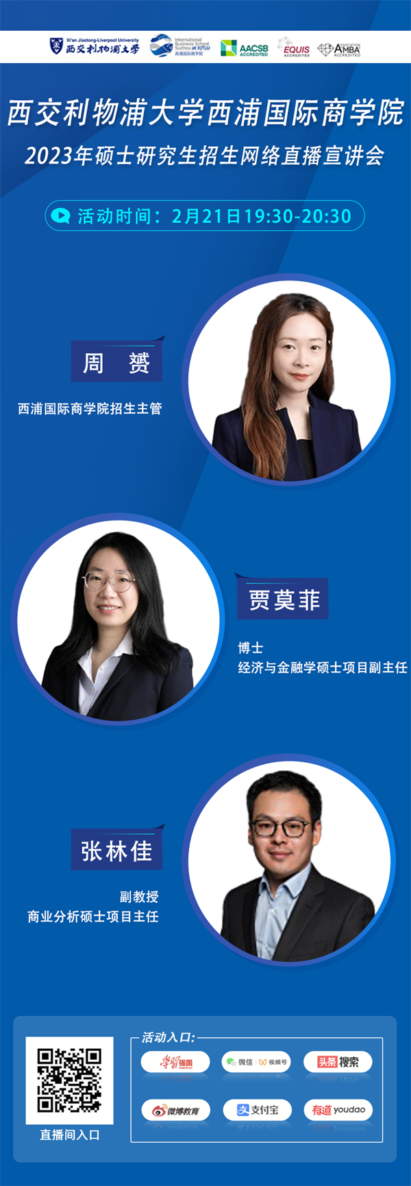西交利物浦大学2023年硕士研究生招生网络直播宣讲会再次开启!本场直播是经济与金融学硕士与商业分析硕士专场。