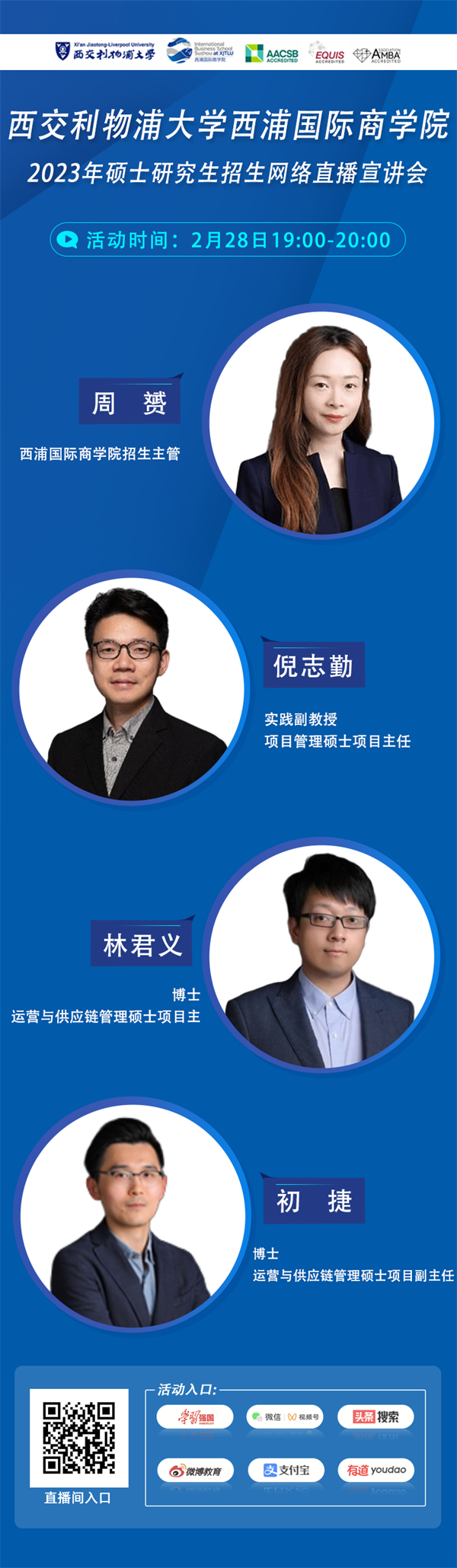 西交利物浦大学2023年硕士研究生招生网络直播宣讲会再次开启!本场直播是运营与供应链管理硕士&项目管理硕士专场。