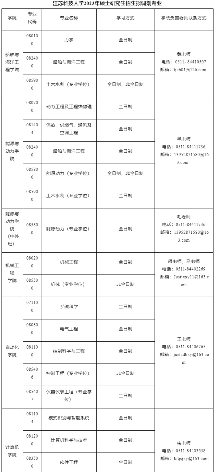 江苏科技大学2023年硕士研究生招生拟调剂公告