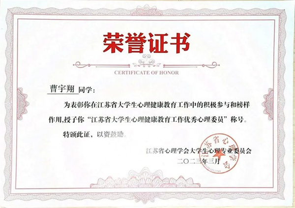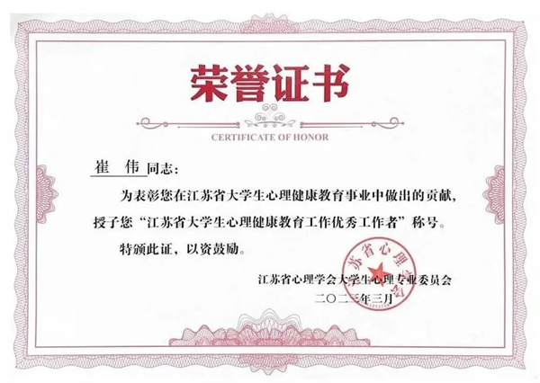 江苏省大学生心理健康教育工作表彰