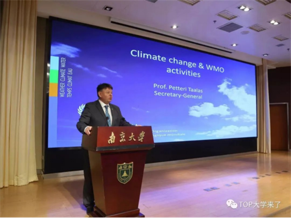 双方就深化国际合作、支持南京大学南赫学院建设等议题展开深入讨论。会后,塔拉斯秘书长在图书馆报告厅为我校师生作主题为“气候变化与世界气象组织倡议”的学术报告,现场座无虚席。